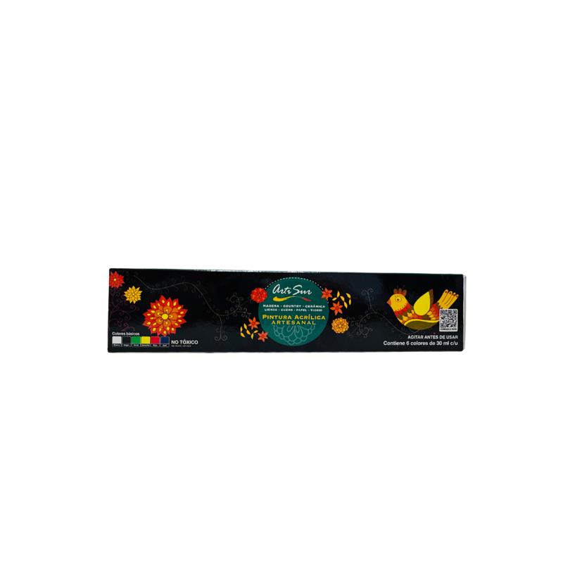 Kit Pintura Artesanal consiste en un set de seis colores básicos de pintura acrílica base agua, de fácil aplicación y elaborada con pigmento de calidad. Presenta buena opacidad, lo que permite la superposición de trazos. Es una pintura de secado rápido, con buena fluidez y gran capacidad de mezclado. Presentación 30 ml cada unidad.