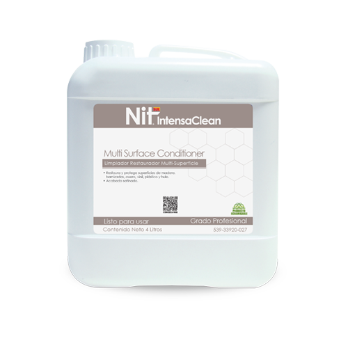 NIT IntensaClean Multi Surface Conditioner es un acondicionador con siliconas no volátiles, diseñado para restaurar y proteger múltiples superficies como vinilo, plástico, hule, madera tratada. A diferencia de productos similares, no deja una superficie grasosa o excesivamente brillante, sino un elegante acabado satinado.