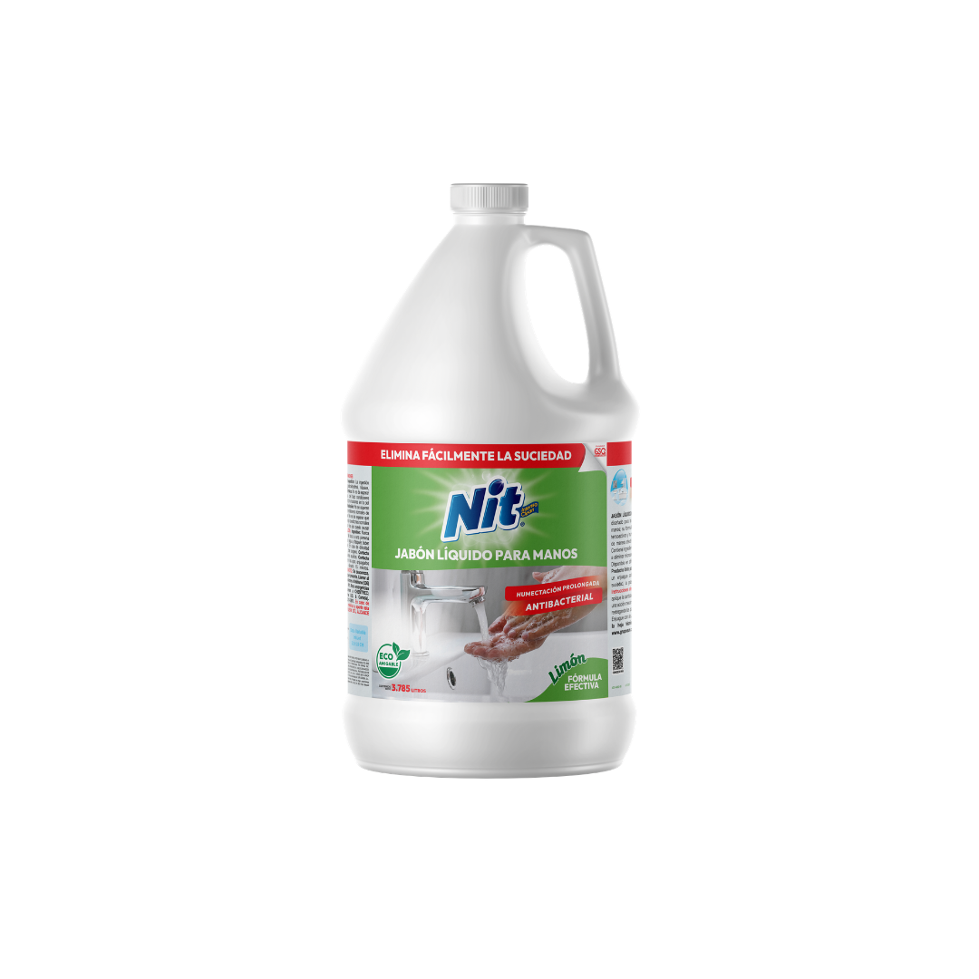 El jabón líquido para manos NIT está formulado para limpiar eficazmente la piel mientras ayuda a mantener su hidratación natural. Su mezcla equilibrada de tensoactivos y humectantes permite eliminar suciedad, grasa y microorganismos sin resecar las manos. Proporciona una agradable sensación durante su uso y deja la piel limpia y suave. Es un producto listo para usar, ideal para hogares, oficinas, comercios e instalaciones industriales que requieren higiene constante. Además, contiene componentes biodegradables y está disponible en diferentes aromas o en presentación neutra.