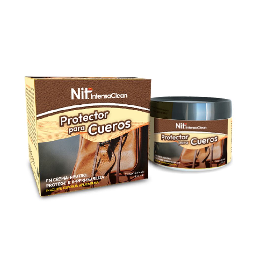 PROTECTOR DE CUEROS NIT es una crema impermeabilizante que hidrata, flexibiliza y renueva artículos de cuero o cuerina (cuero sintético, eco-cuero) antiguos o resecos, protegiendo cualquier artículo de esos materiales. Es de especial aplicación en la protección y renovación de monturas, bridas, arneses y otros artículos de equitación, así como zapatos, ropa de cuero, botas y cualquier artículo de cuero.