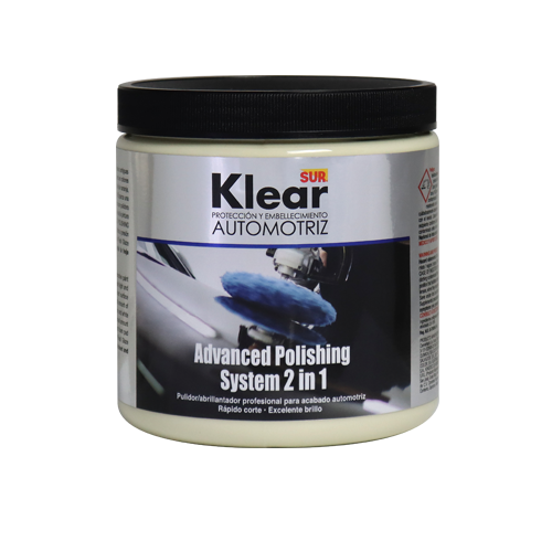ADVANCED POLISHING SYSTEM 2 IN 1 de Klear es un pulidor y abrillantador de pinturas automotrices de poliuretano. Con un único producto y poca cantidad se puede lograr un excelente brillo y nivelación, tanto en colores claros como en colores oscuros. Presentación de Envase plástico de 870 ml.