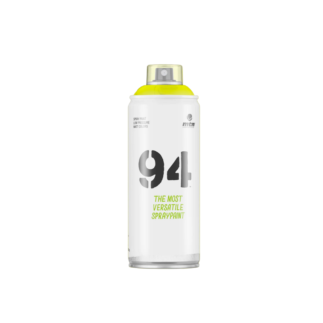 El MTN 94 fluorescente amarillo está formulado para ofrecer alta luminosidad e impacto visual. Ideal para señalización creativa, arte urbano y decoración. Recomendado aplicar sobre base blanca para potenciar el efecto fluorescente.
