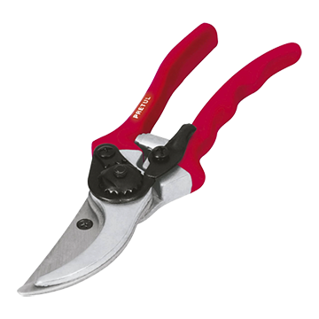 Tijera para poda , cuchilla curva de paso.Cuerpo de aluminio Cuchilla de paso fabricada en acero SAE 1050, diseñada para cortes limpios en plantas verdes. Resorte tipo gusano de larga duración. Mangos recubiertos de vinil para confort.Jardinería