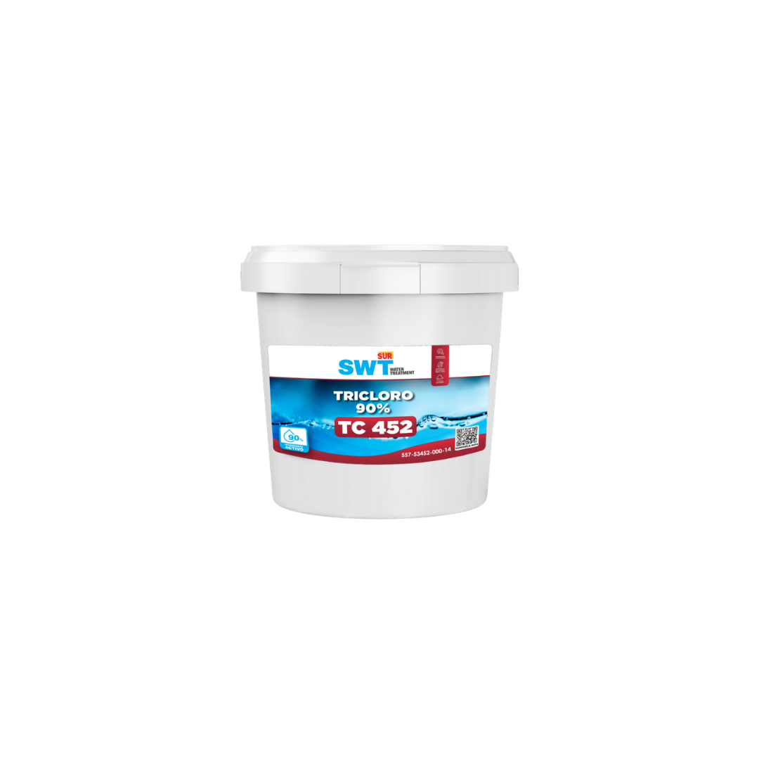 TRICLORO 90% TC 452 es un producto granulado, compuesto a base de ácido tricloroisocianúrico (ATCC), con una alta cantidad de cloro disponible. Posee un amplio espectro de efectividad que elimina algas, bacterias y virus. Su alto contenido de cloro disponible permite asegurar una dosis de cloro residual en el agua que ayuda a mantener las condiciones de higiene, dando un mayor rendimiento comparado con otros productos clorados.